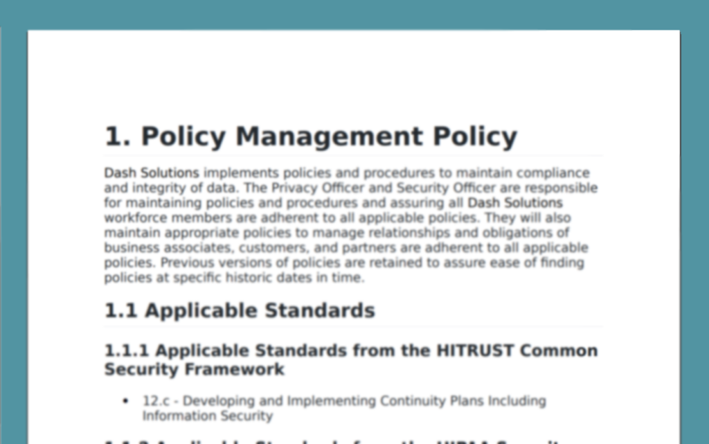 Dash enables teams to plan and implement compliance safeguards and security controls including the following