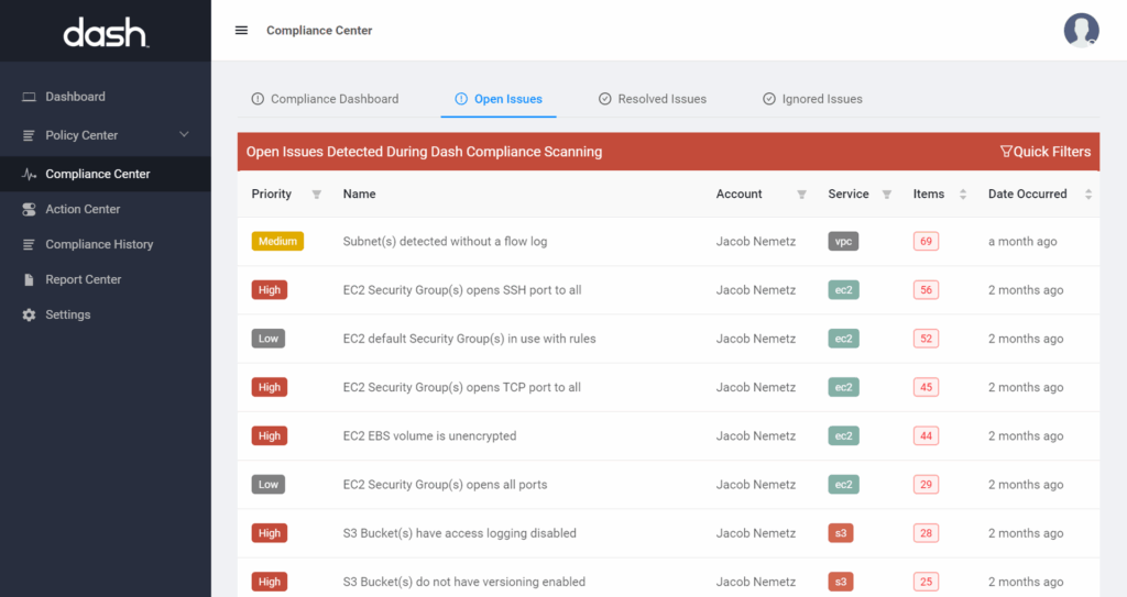 Dash monitors your AWS account for HIPAA configuration issues and security policy violations. Dash alerts your team when about compliance concerns before they become full-blown violations.